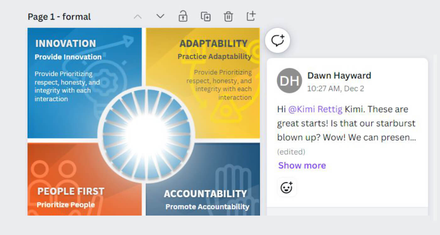 Key Deliverables Icon set for core values Followed new branded color palette Typography guidelines Branded digital vector assets Design research of corporate design Tools & Technologies Canva Design Color & Typography Icon Fonts Adobe XD Adobe Acrobat Zoom meetings